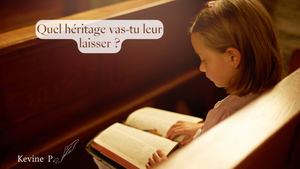 Avoir ces interrogations nous pousse à travailler sans relâche pour laisser à ceux qui sont sous notre responsabilité un patrimoine. Elles nous encouragent à les éduquer au mieux pour les rendre responsables, autonomes, forts. Et le faire, c’est louable. Néanmoins, il faut voir au-delà. Car le meilleur héritage que nous puissions laisser à nos enfants, c’est Christ. C’est de les instruire dans la crainte de l’Éternel, de leur apprendre à connaître Dieu, à l’aimer et à le servir (Proverbes 22.6).